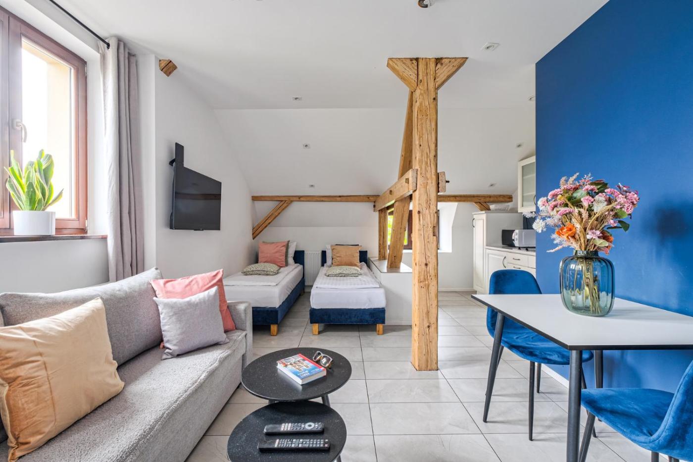 Studio. The studio features a washing machine, a tea and coffee maker, as well as a private bathroom boasting a bath or a shower and a hairdryer. Guests can make meals in the kitchen that has a stovetop, a refrigerator, kitchenware and a microwave. The studio provides a seating area, a sofa and heating. The unit has 3 beds. Studio - 5 osobowy. Powierzchnia pokoju ok.: 30 mkw.