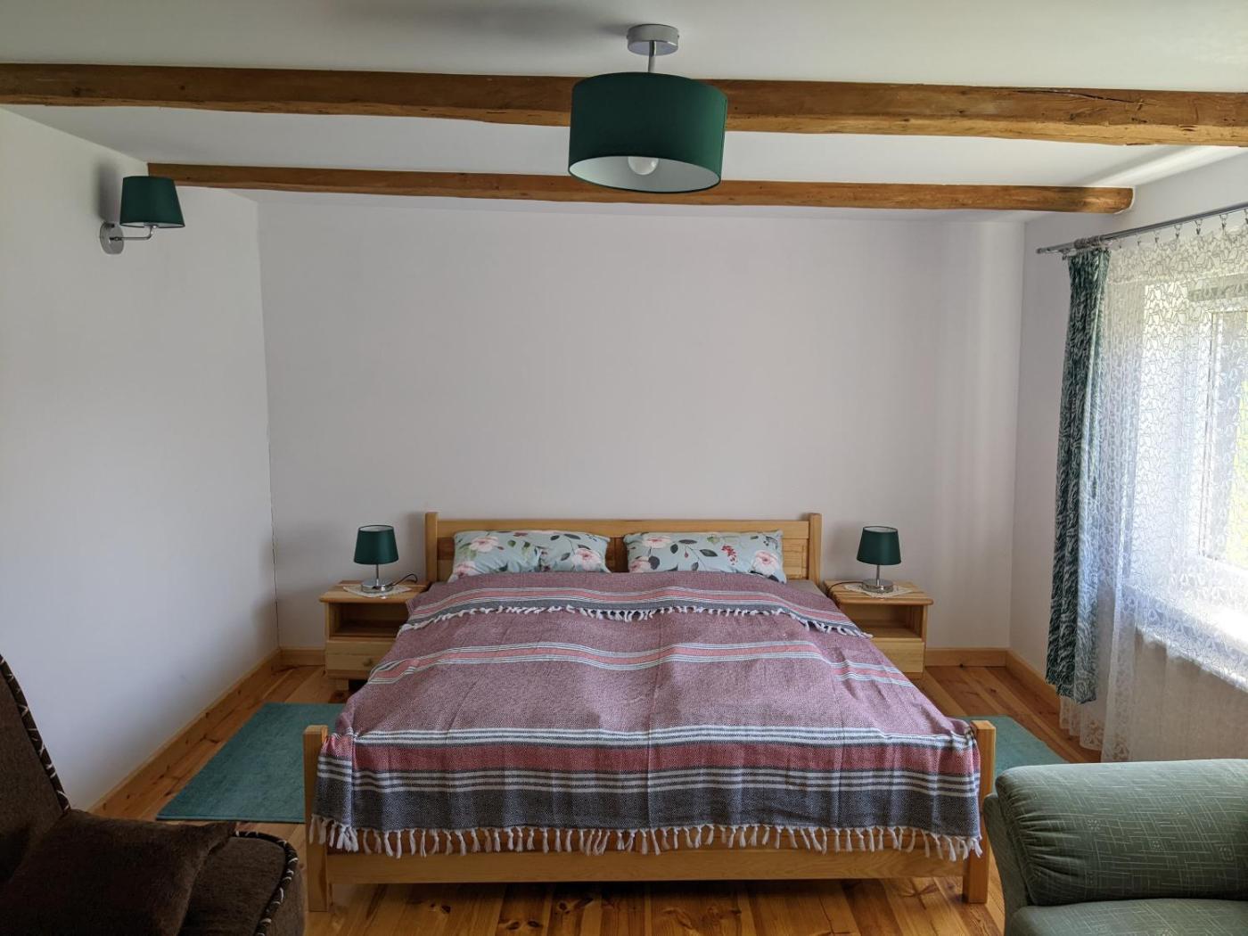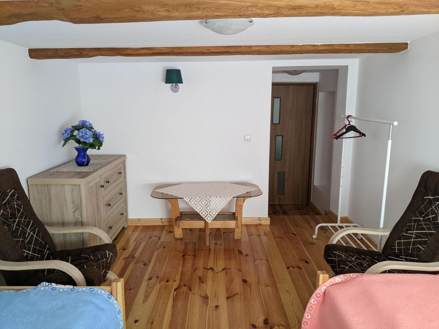 Pokój Trzyosobowy ze wspólną łazienką. The triple room provides a coffee machine, a dining area, as well as a shared bathroom featuring a bath and a shower. Guests will find a stovetop, a refrigerator, a dishwasher and kitchenware in the well-equipped kitchenette. The triple room also offers a barbecue. The triple room features parquet floors and offers a wardrobe, heating and garden views. The unit offers 2 beds. Pokój Trzyosobowy - 3 osobowy. Powierzchnia pokoju ok.: 16 mkw. ;