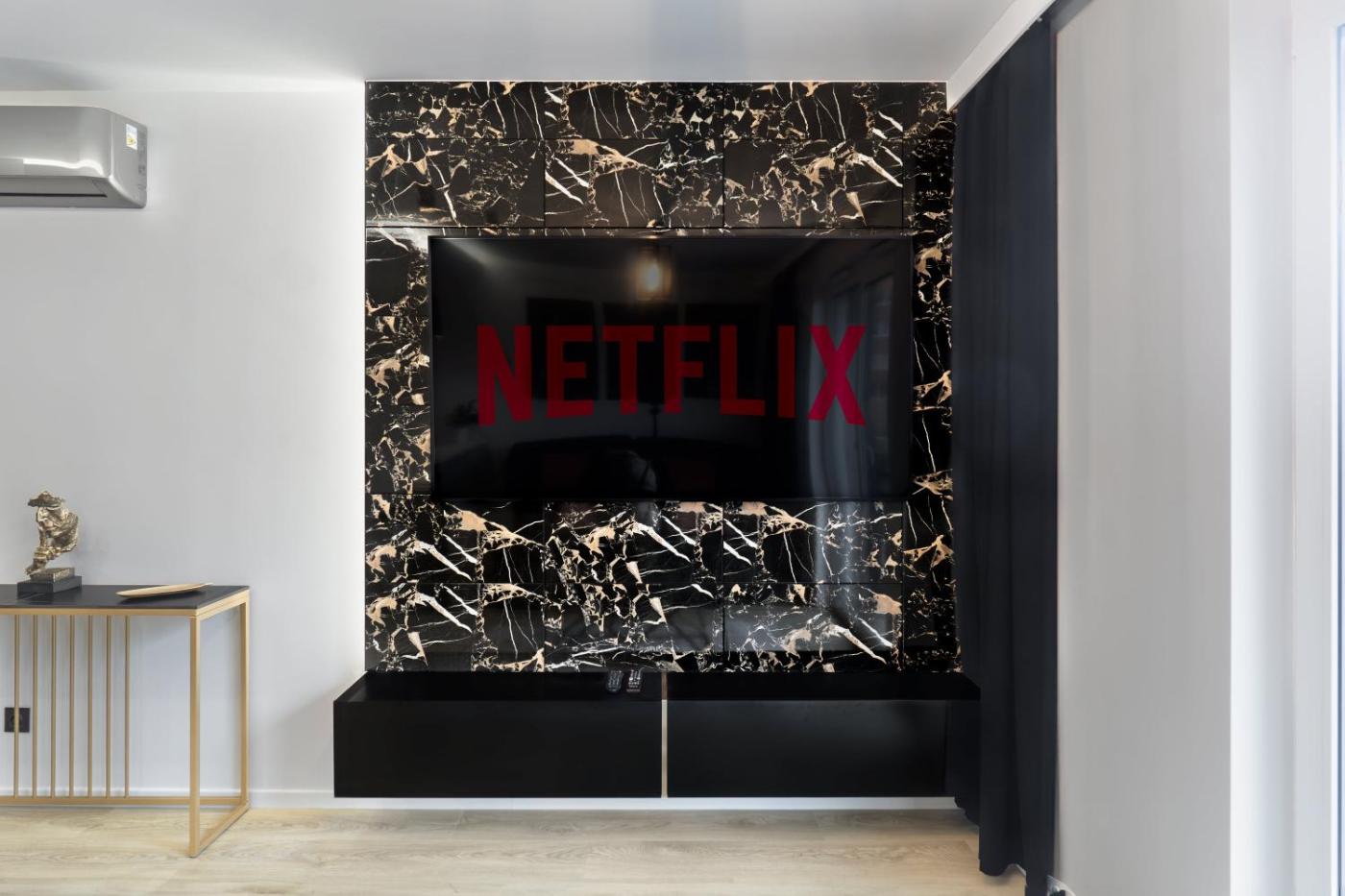 W apartamencie do dyspozycji gości przygotowano sypialnię (1), kuchnię ze standardowym wyposażeniem, takim jak lodówka i zmywarka, a także łazienkę (1) z prysznicem. Wyposażenie obejmuje także pralkę oraz telewizor z płaskim ekranem z dostępem do kanałów kablowych. W apartamencie zapewniono ręczniki i pościel.